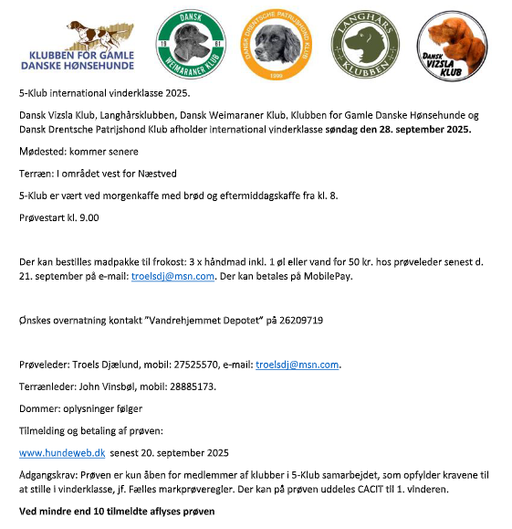 5-Klub arrangerer udstilling i Uldum og Jægerspris, hvor alle DDRK medlemmer kan deltage. Mere info følger senere.